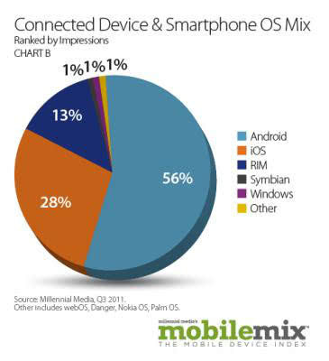 图示:2011年第三季度手机操作系统市场占有率