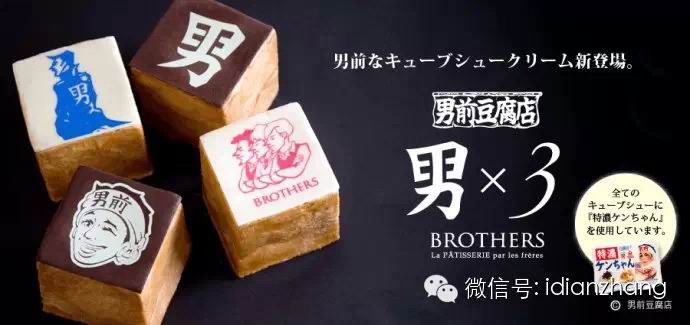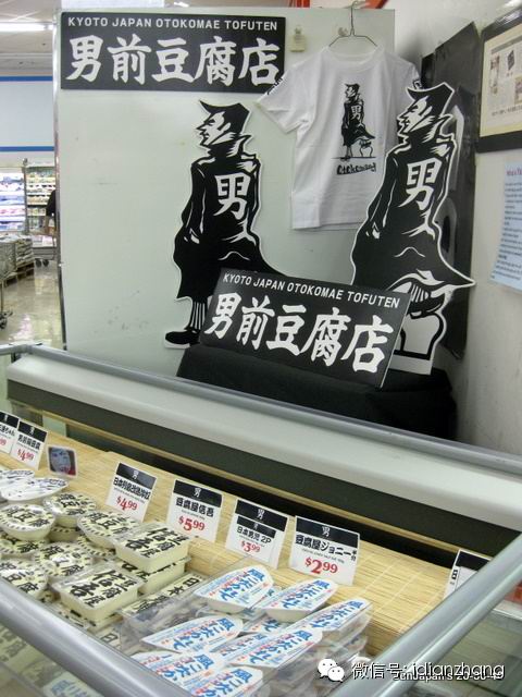 2005年日本京都的伊藤信吾接手父亲豆腐老店,不满足于"三块豆腐100日元"的卖法,打破几十年做"标准豆腐"的传统,将豆腐造型进行了改良,并取了一个非常不像豆腐的名字:男前豆腐店,意即"男子气概豆腐店"(又译"美男子豆腐")。