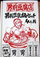 这家豆腐店除了店名跟网站非常有趣之外,就连所有豆腐商品的命名和包装都走独特创意风,跟店名相同的「男前豆腐」、做成像桨一样的「吹风的豆腐店.JOHNNY」、做成饭匙样春夏限定的「吵架至上凉拌豆腐小子」、秋冬限定的「吵架至上汤豆腐小子」(喧哗上等汤豆腐野郎)、男-TOMOTSU、绿大豆.制豆腐「OJOE」等。