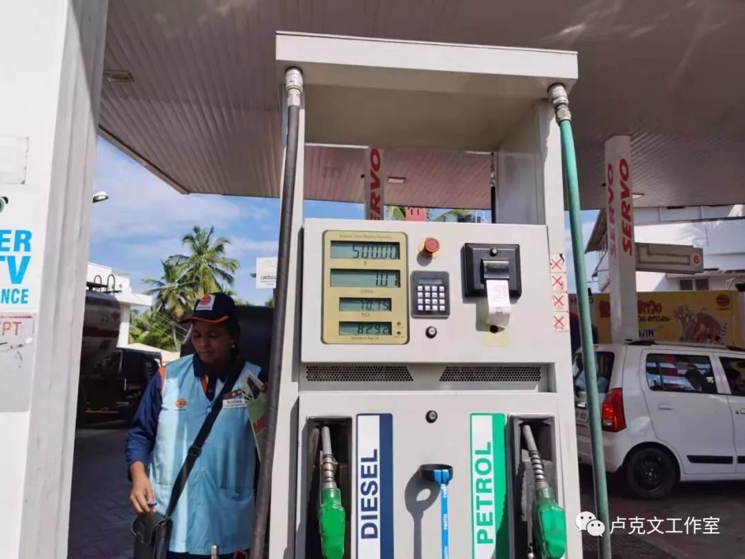 如果自己开车的话,印度的油价比中国还略贵一点,柴油价格是7元人民币一升,92号汽油是7.8元一升,95号汽油是8元一升,翻译说印度普通人有时候有车也不开,宁肯骑摩托车,就是因为油价太贵。