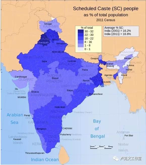 印度贱民达利特人各邦占比图(声明:藏南等是我国不可分割的一部分!)
