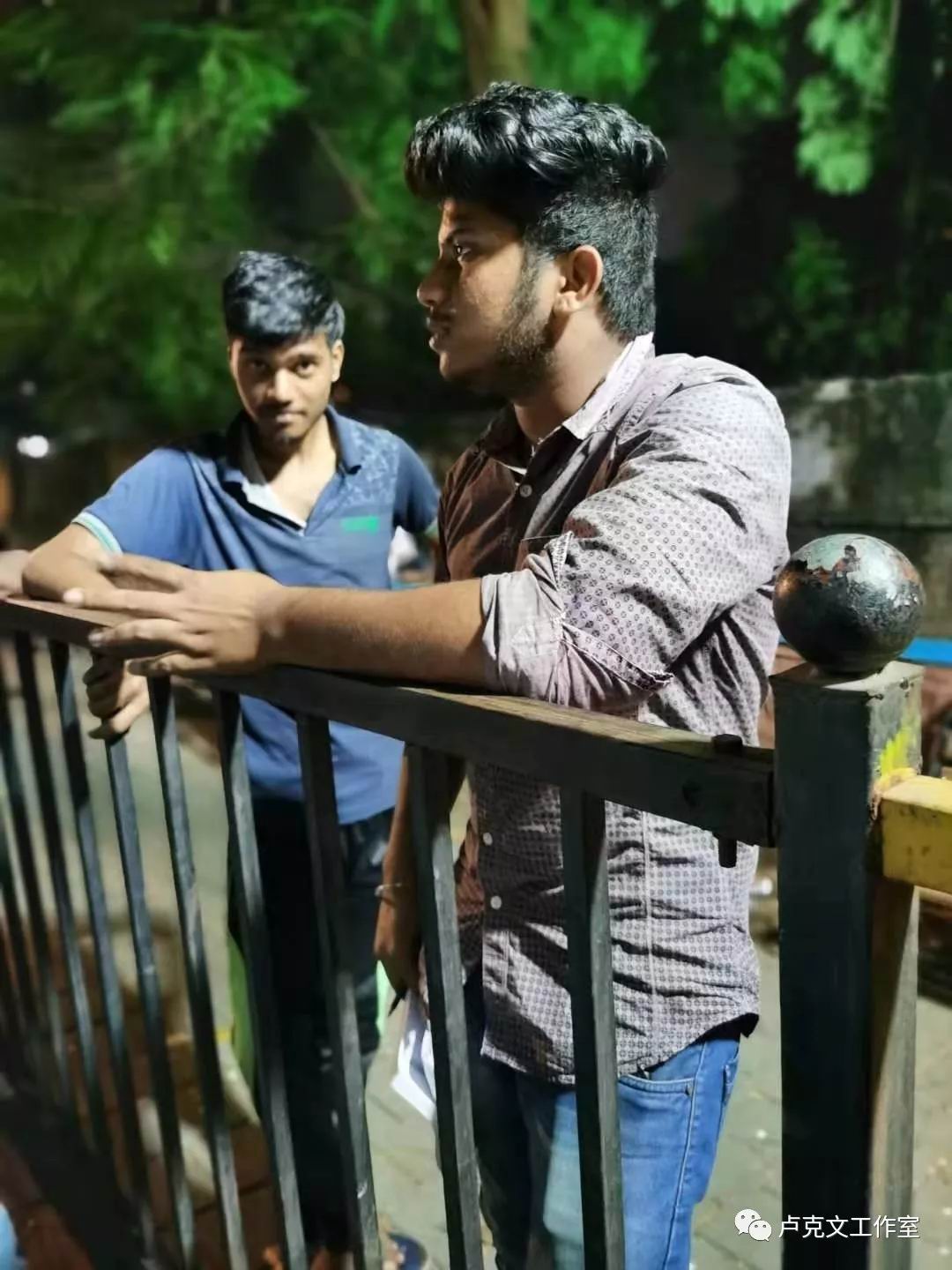 果然到了晚上,这里的长椅上有不少年青人过来自习,我采访了几个年青人,约18到20岁,他们说自己来自孟买贫民窟,在帮别人卖菜为生,薪水低廉,但希望自己将来可以成为一名软件工程师,他们在家无法学习,家里人会安排他们做这做那,停不下来,因此来这条街的路灯下长椅上自习。