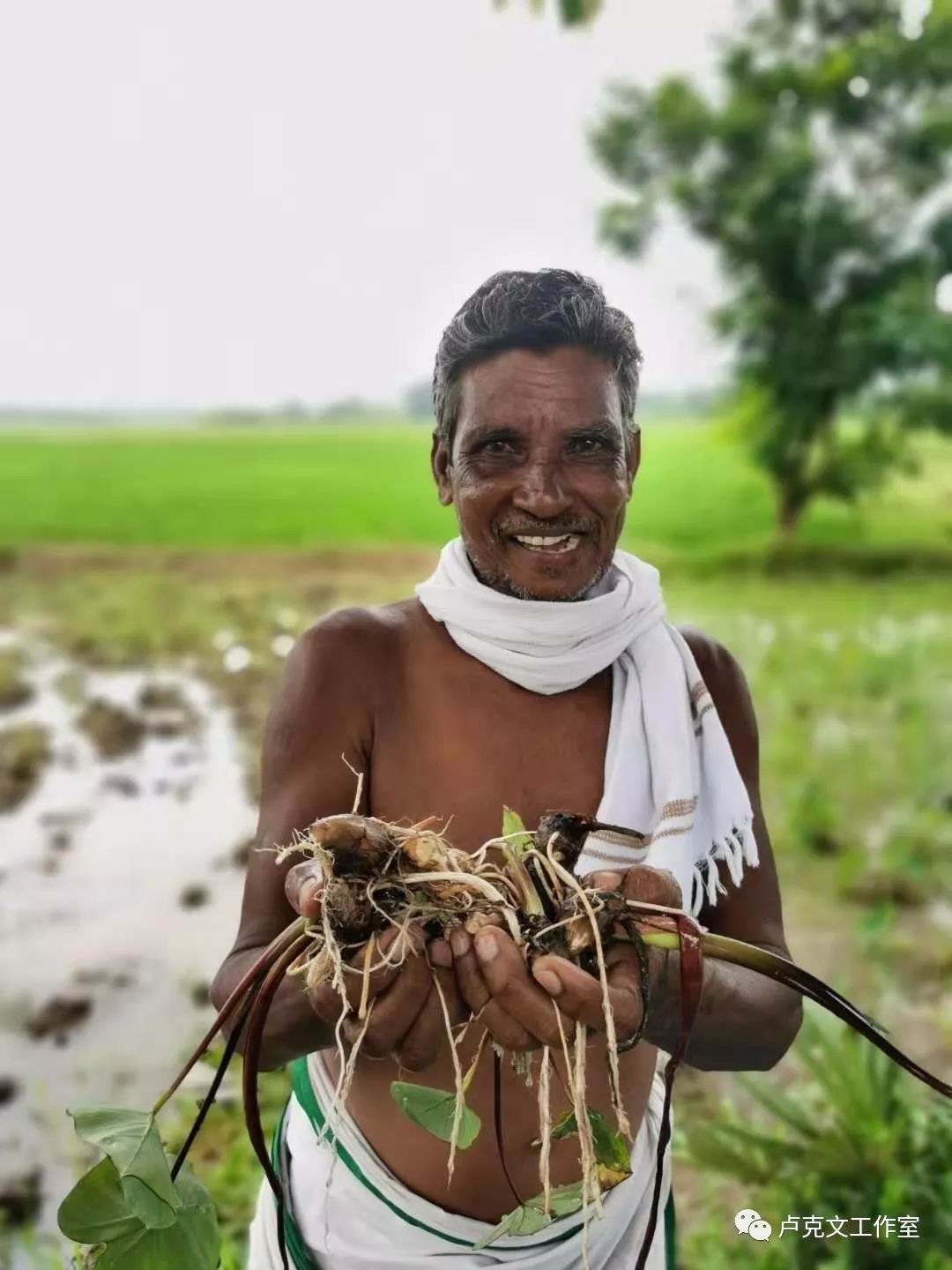 我见到Natarajan的时候,66岁的他正在农田里劳作,我的随身翻译在路边的坪地上用泰米尔语喊了他一声,Natarajan便弯腰洗了洗手,满面笑容,光着脚从农田里向我走来。
