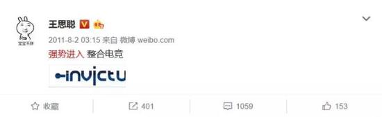 2011年,还没当上国民老公的王思聪带着首富给的5亿启动资金,在微博上发了"强势进入,整合电竞"八个大字,开始布局电竞行业,他收购了因资金链断裂即将解散的DOTA战队CCM,重组创办iG电竞俱乐部。