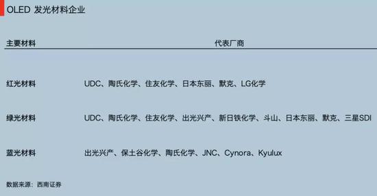 1.上游是材料和设备,平均毛利率50%往上走,主要有玻璃基板、发光材料、蒸镀机等核心材料和设备。