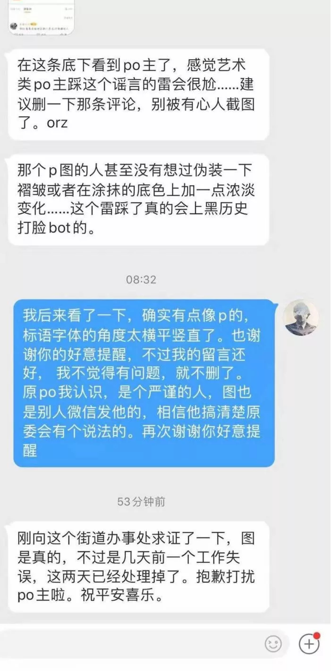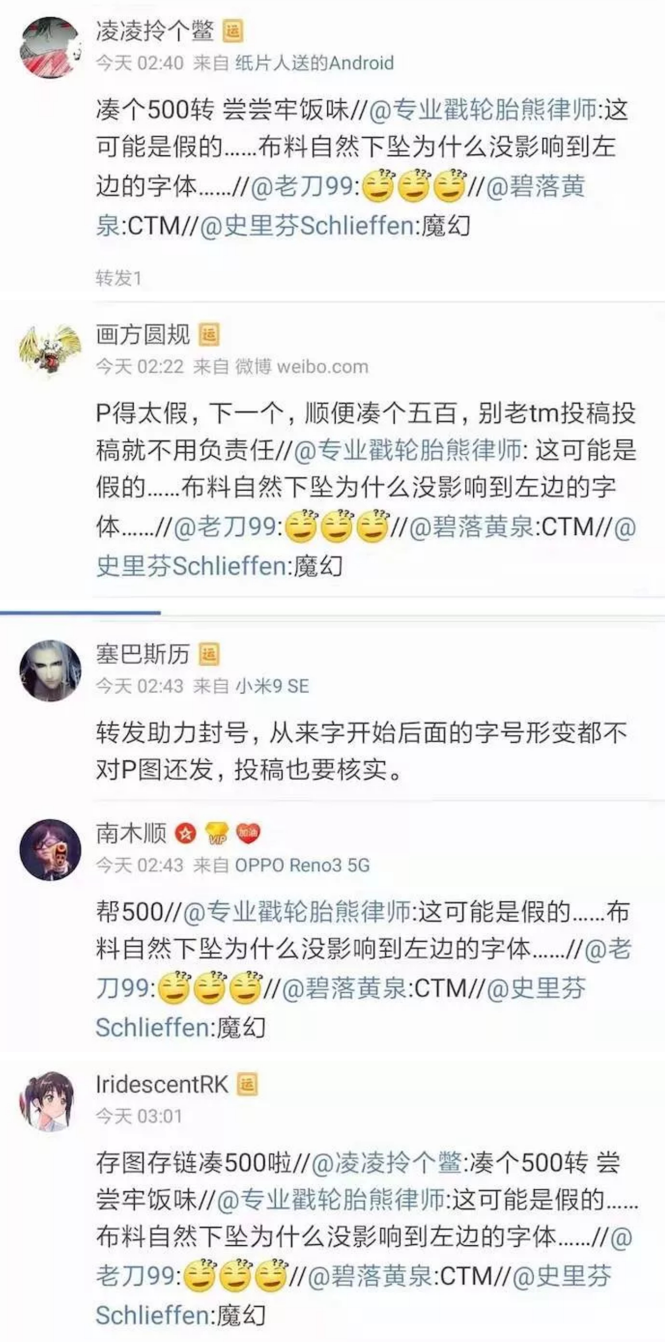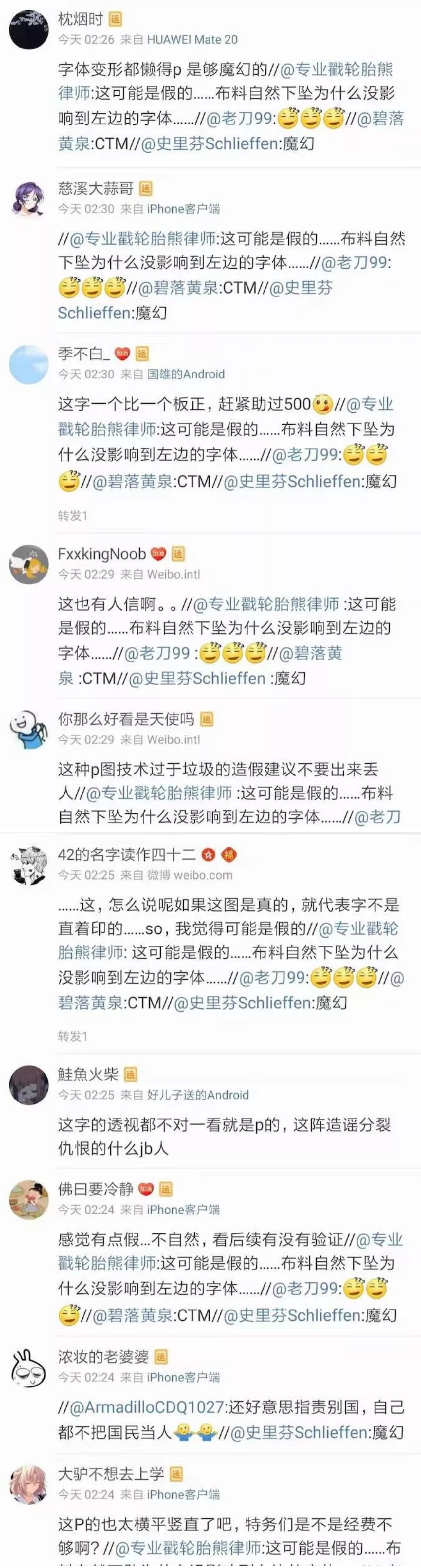 大半夜也就传开了,在转发到几百个的时候出现了一群侦探,质疑这是P的。随着转发越来越高,质疑的声音越来越响亮,侦探们从斩钉截铁地说这是P的图到直接给我扣帽子,说我带节奏故意抹黑。