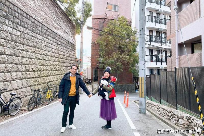 一家三口在日本房子前