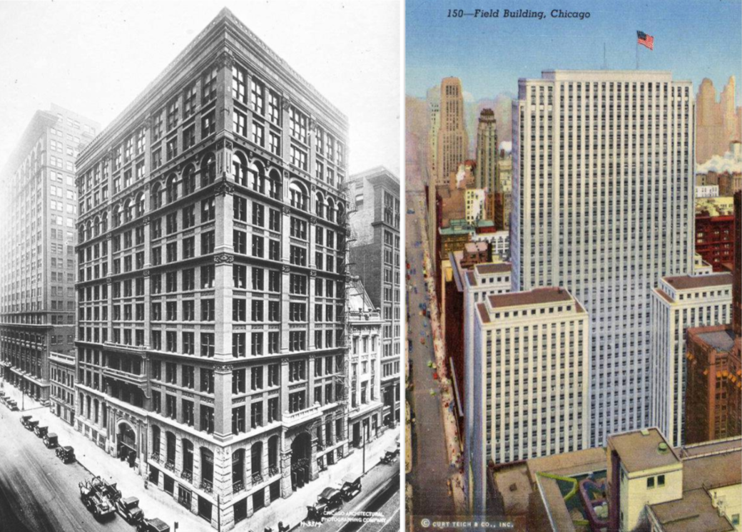 它的落成,占据「天时地利」:19.世纪中期以来,芝加哥地价逐渐昂贵,用地不足的问题开始凸显;1871.年.10.月,芝加哥发生了燃起了一场持续三天的大火,毁掉不少建筑,客观上也给灾后重建开辟了空间。