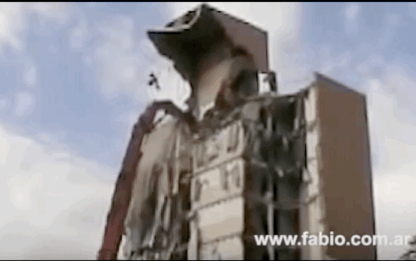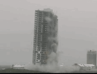 这种拆卸方式虽然看起来很厉害,但还是具有一定危险性:虽然坍塌的方向可控,但飞扬的砂石和碎屑还是会造成污染和伤害。爆破带来的粉尘、噪音和冲击波,也会影响到周边建筑,在高楼密集的.CBD.区域不太适用。