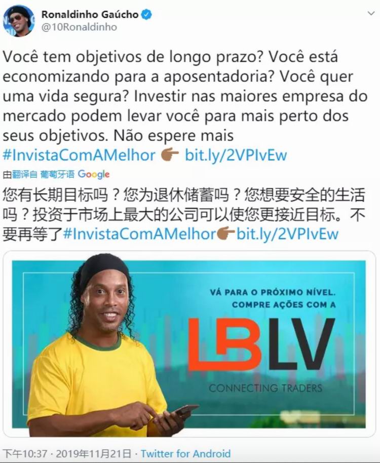 退役后,小罗的收入大不如前,跟着小罗无钱可赚的阿西斯开始为小罗接洽各种不靠谱代言。英国媒体称这对兄弟根本不在乎合同的内容,只要有钱他们就愿意签字。