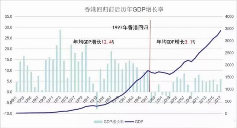 这也是为啥自从2000年之后香港经济一直低迷状态,内地的封锁红利没了,又大幅去工业化,转型做金融和服务业之后,社会又迅速被撕裂。