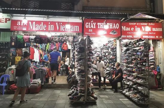河内夜市到处都是卖越南制造的鞋店;摄影/《财经》记者?陈潇潇