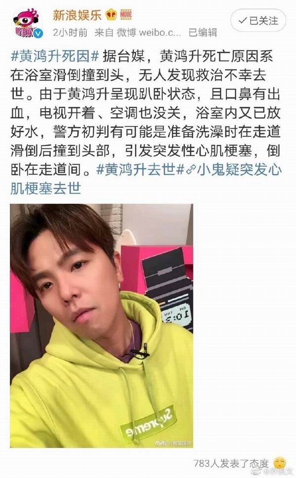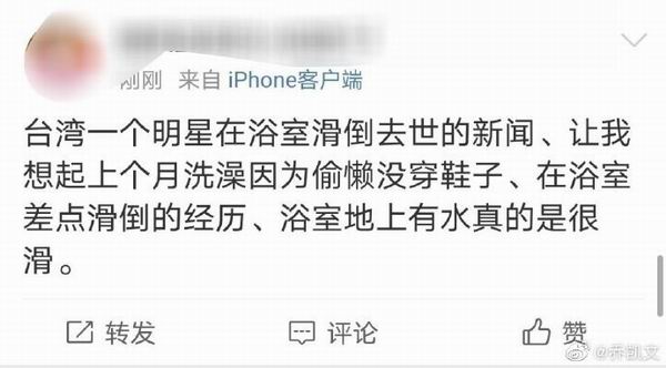 » 台湾男星黄鸿升去世,大家要注意浴室防滑