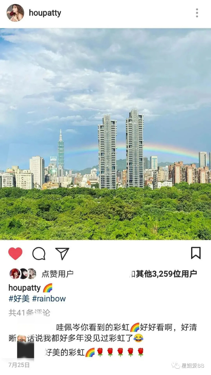 昆凌的回应很有意思,她解释说:"这是一张建商传给我们的照片,我们当时就在信义联勤,他说我们后面有彩虹,我觉得很漂亮的PO了,没想太多"