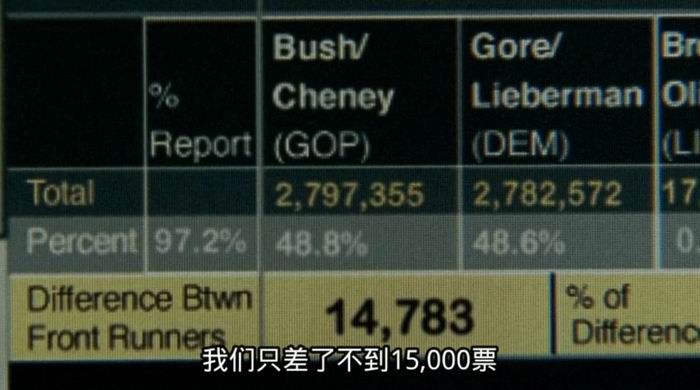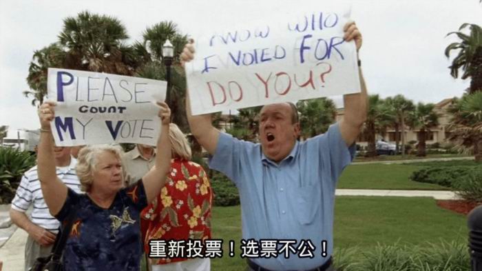 所以电影刚开始就表现老年人投票场景,老奶奶皱着眉头仿佛在说,我想选戈尔,但我该戳哪个孔?