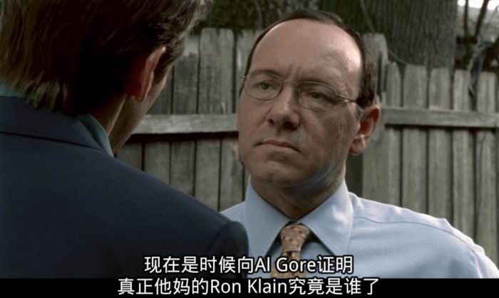 此时史佩西扮演的罗恩o克莱恩出场,他是前戈尔团队的幕僚长。