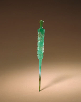 故宫博物院收藏翡翠作品800多件,是全国乃至全世界收藏古代翡翠最多的博物馆,藏品主要为清宫遗存,其中帝后玺册20余件,首饰、服饰类作品400多件,其他器物300多件,这些藏品的时代多为清代中、晚期。