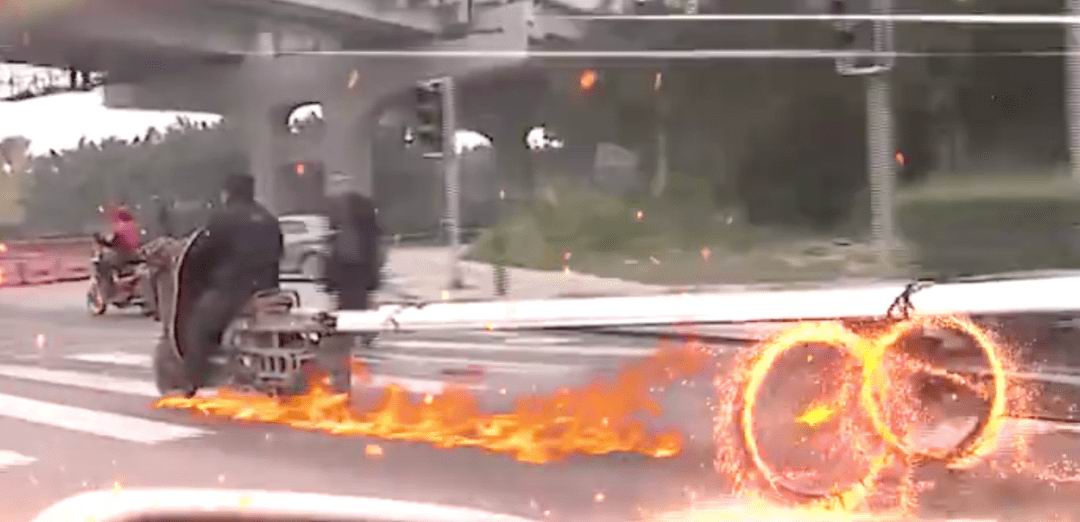 谭Sir:他骑着非机动车在机动车道上非法牵引还要去放火什么亡命之徒啊。