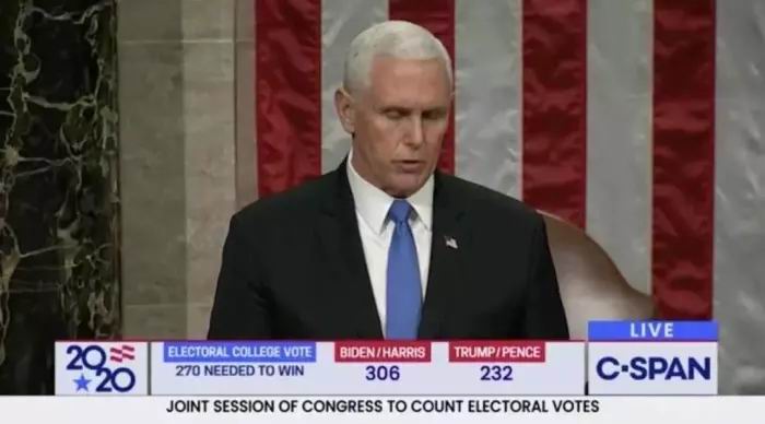 暴乱之后,重新开会,彭斯首先表态:暴乱无法改变大选结果。