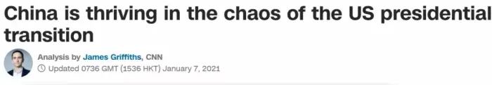 美国时间6日深夜,回过神来的美国有线新闻网(CNN)带着酸劲,说中国恐是美国乱局的"最大赢家"。文章引用了中国网络上的一段话,"这是美洲大陆首次在没有美国大使馆干预下发生政变。"