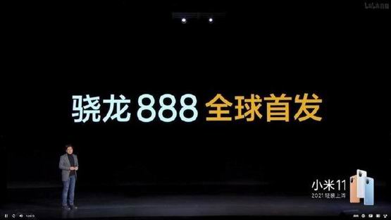 2020年12月28日,小米在其旗舰手机小米11上首发骁龙888处理器。来源:小米发布会