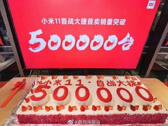 资料显示,小米11在1月1日首销开售5分钟便卖出35万台,目前仅京东一个平台的销量便突破了41万。据知名爆料博主“数码闲聊站”透露,小米11本月初的首卖销量已经突破50万台,并且晒出了小米高管团队庆祝销量破50万的现场庆祝图,据传其全网销量已经破百万。