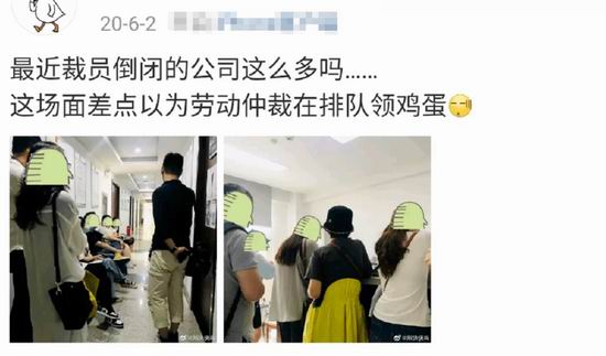 疫情行业低迷那会情况夸张,办理劳动仲裁的网友光是排队就排了大半天,人数之多,让人想起小区里大爷大妈排队领鸡蛋。