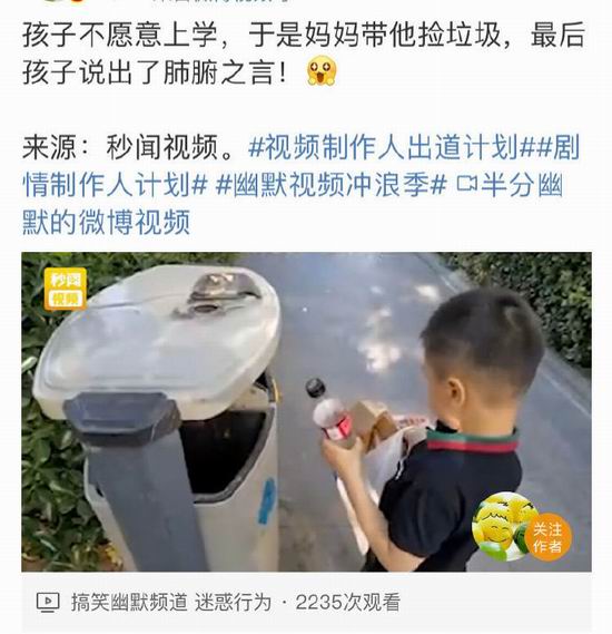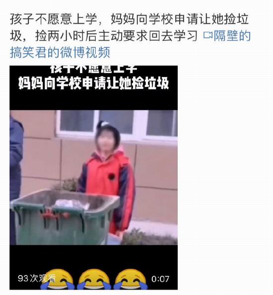 比如小朋友不愿意上学,家长说,那行啊,我们捡垃圾去、打零工去…… 几个小时后孩子们流下了后悔的眼泪