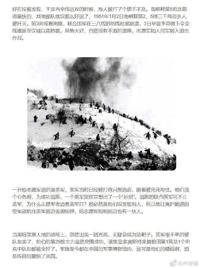 @卢诗翰:刚刚听到有人说起当年美国为了摆脱志愿军追击,往边上英国头上打照明弹的段子~