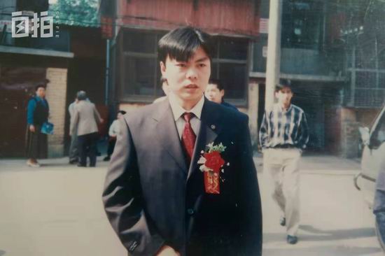 2000.年结婚当天的照片,我身着西装,戴着胸花,准备迎娶新娘。