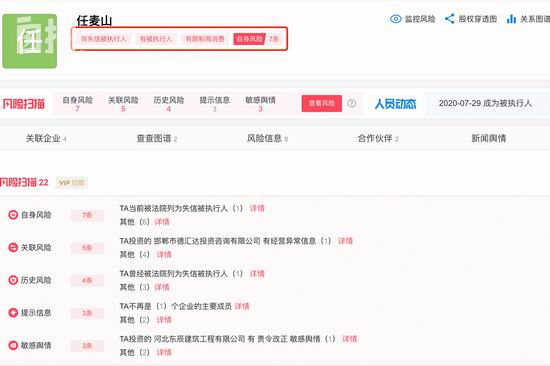 这是企业信用网站上关于我的信息,名字下面有.7.条风险提醒。