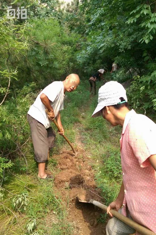 我雇佣的村民正在预埋饮用泉水管道。