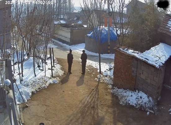 陈小冬父亲和一名邻居站在午后的阳光下闲聊,监控的收音效果不错,细细一听,他们在交流吃烟的事儿。受访者供图
