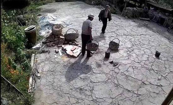 前两天,有几个陌生人进了院子,拿起南瓜准备带走,走之前抬头看了一眼院子里的监控,便把南瓜放下了,还跟同伴说 “这儿有监控的”。之后两个老人看了画面,说不认识这几个人,应该是外面的。