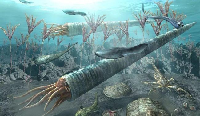 这也是为什么,从寒武纪到奥陶纪,软体动物会出现 5~10 米房角石那般的海洋原始霸主。