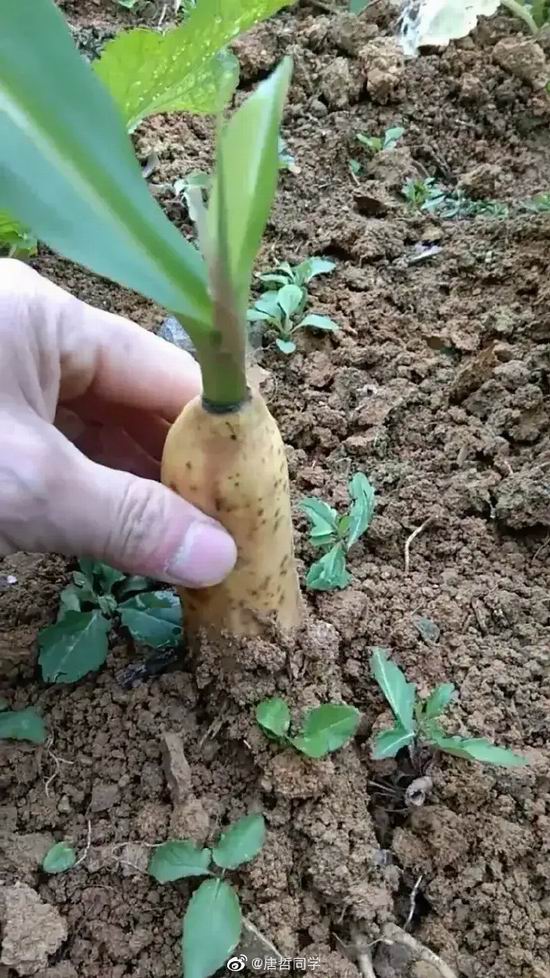 @唐哲同学: 广东茂名的朋友发的照片,原来香蕉是这样种出来的。真是开眼界了,明天也去买几斤香蕉种地里试一试!