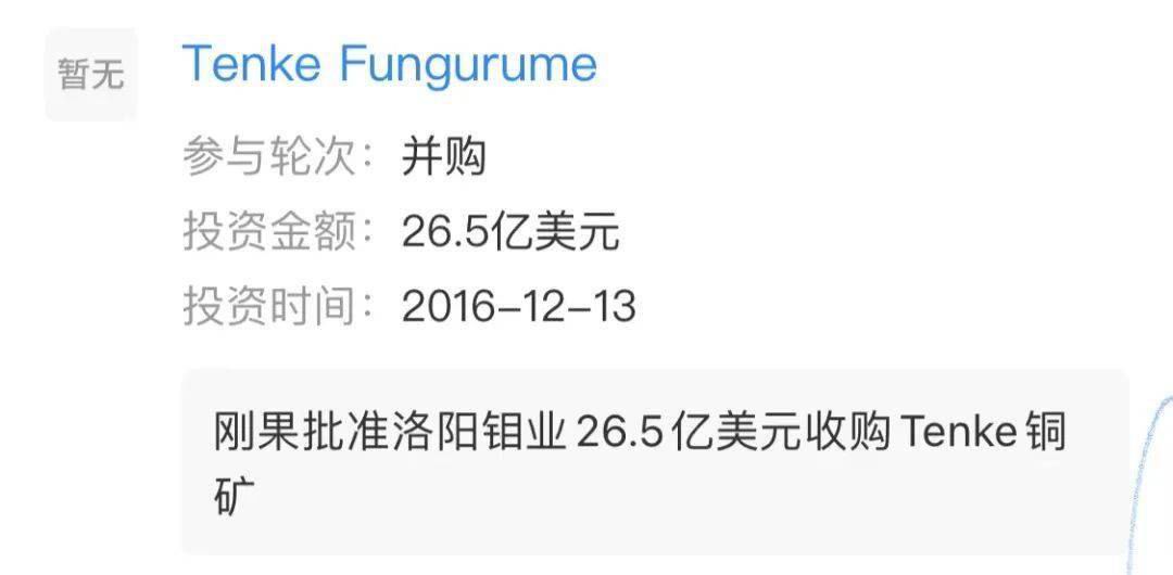 再加上也就洛阳钼业是带着诚意来的,出价又是最高的,于是交易迅速就达成了。