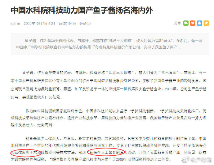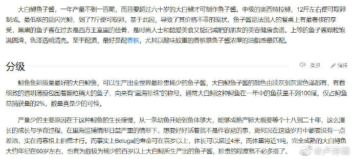 @卢诗翰:看见有人在说国产食材,我想说个鱼子酱的故事。