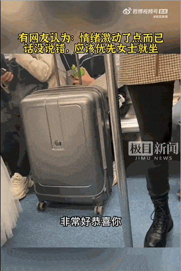 在深圳地铁上,一位女士情绪激烈地向在座的男性发起抗议与嘲讽。