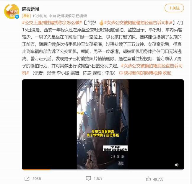 有个女孩子在公交车上被偷拍,然后直接告诉了司机。 这位司机相当配合地将公交车停下,等待女孩报警,并阻止了男子想要逃跑的一系列行为。