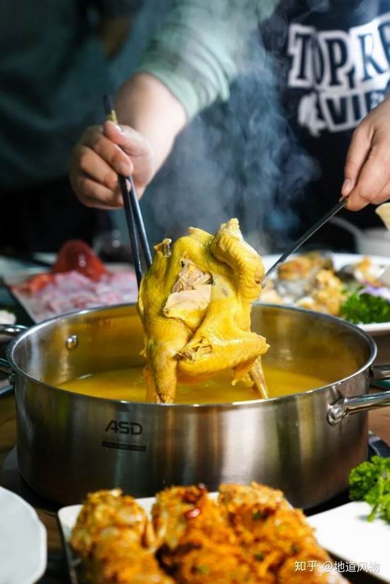若是牛瘪、羊瘪火锅过于惊奇,不妨试试近年来势头生猛的猪肚鸡火锅,或是福建龙岩连城的涮九门头,都代表着对食材分割的极致。比如猪肚鸡,生猪肚包上鸡,让火锅变成套娃,鸡肉极其滑嫩。猪肚之外,这种火锅也练就了一种奇门食材功夫:粉肠头、猪天梯、黄沙润、骨髓、生肠…….一种种名称奇形怪状的猪杂,等着你去挑战。