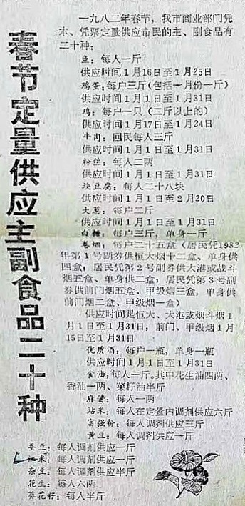 1982 年春节定量供应主副食品二十种