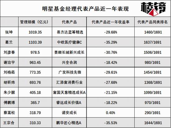 据作者统计,此前一年备受基民追捧的基金经理代表产品表现普遍靠后。其中,葛兰管理的中欧医疗健康 C 和王宗合管理的鹏华匠心精选 A 近一年回报亏损超 35%,在偏股混合基金中收益排名垫底。