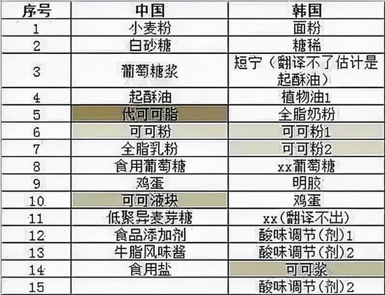此前,有网友爆料称,韩国品牌好丽友仅在中国等部分市场对其产品实行涨价,其他国家不涨价;同时,其配料表也存在“双标”现象,在中国生产销售的产品中使用的是代可可脂配料,而非可可粉。