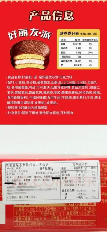 (图:淘宝商城好丽友产品配料截图)