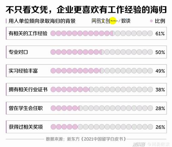 《2021.中国留学白皮书》的调查也显示,同样是海归,企业更喜欢有过相关工作经历或实习经历丰富的.[7]。