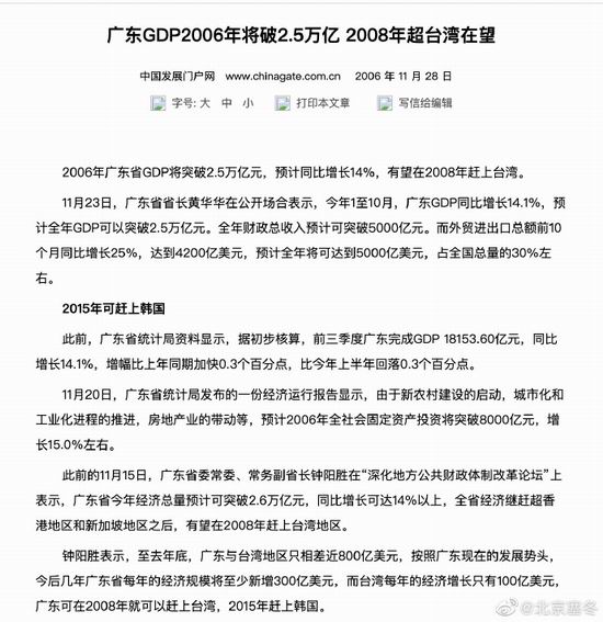 结果呢,一直到 2020、21 年,广东经济总量才正式超过韩国。