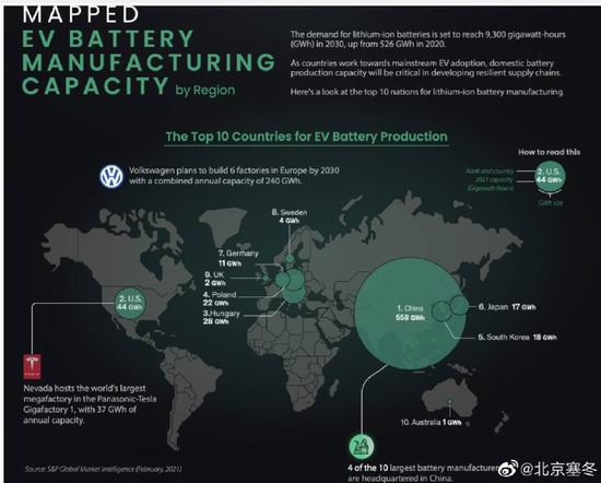 特斯拉准备在德州总部建设所谓 “世界最大电池工厂”,中远期产能达到 100GWh,到时候怕是中国的产量已超过 1000GWh(今年就超过 400GWh)。