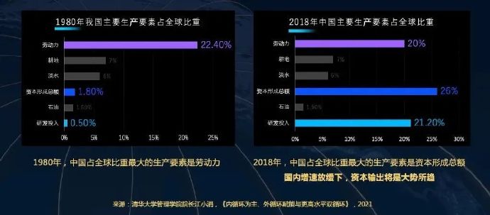 而在 2018 年,我国最具优势的要素禀赋已经变成了资本和研发,劳动力占比甚至还有所下降,不过仍然较高。这个宏观图景能映射到中微观层面的很多现象:比如我国一方面在互联网和数字能源这些重资本重技术的行业全球领先,但与此同时仍有大量劳动密集型产业。