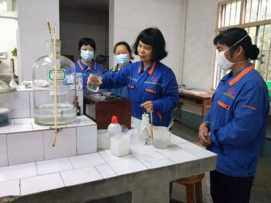 员工正在水泥厂实验室检验产品质量